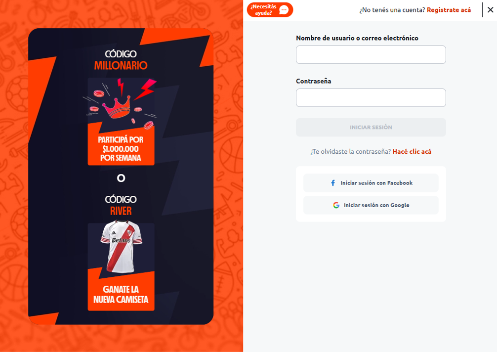 Entrá con tu usuario y contraseña. Si no tenés cuenta, primero registrate desde la opción en la esquina superior derecha.
