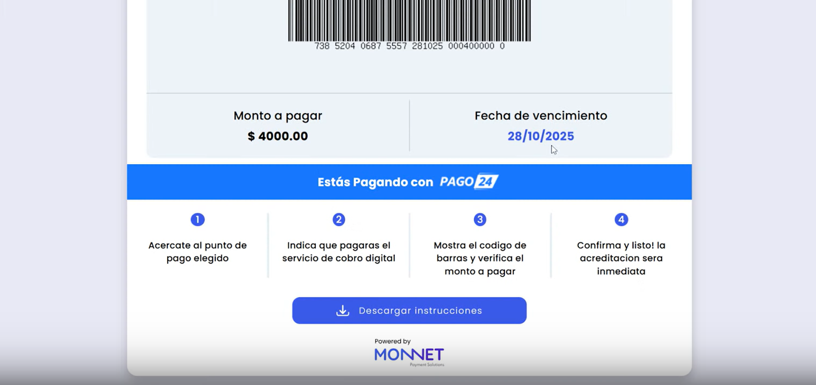 Paso 6: Pagá el cupón en efectivo y espera la acreditación