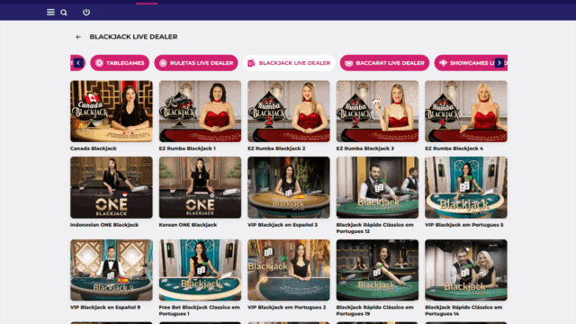 Entre las diversas opciones vas a encontrar 80 mesas de ruleta en vivo, 207 mesas de blackjack en vivo, 69 mesas de baccarat, 12 de Póker, y 22 game shows en vivo como Crazy Time y Monopoly Live.