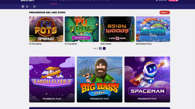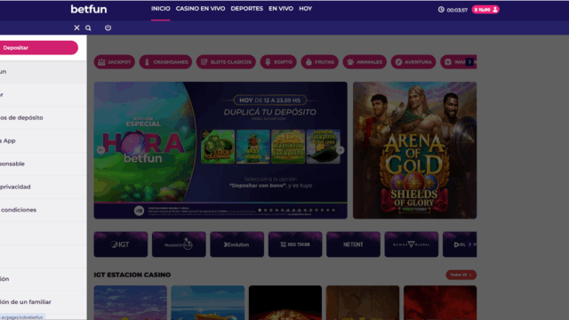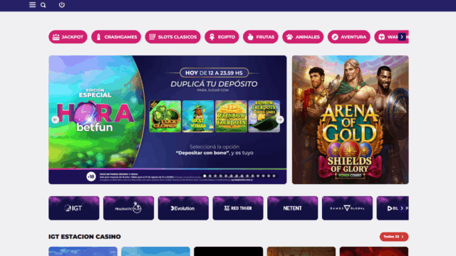 La plataforma de Betfun CABA ofrece una experiencia pensada para jugadores que buscan entretenimiento variado. El casino organiza sus slots en muchas categorías y temáticas como: Warrior, Jackpot, Crashgames, Slots clásicos, Egipto, Animales, Asia, Acuáticos, Irlandeses, Mujeres Guerreras, y más. También podés filtrar por proveedor, ya que tiene una barra que los muestra todos, y los más destacables son Evolution, Pragmatic Play y Red Tiger.