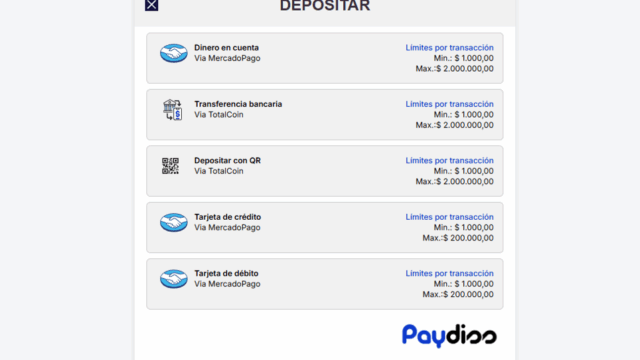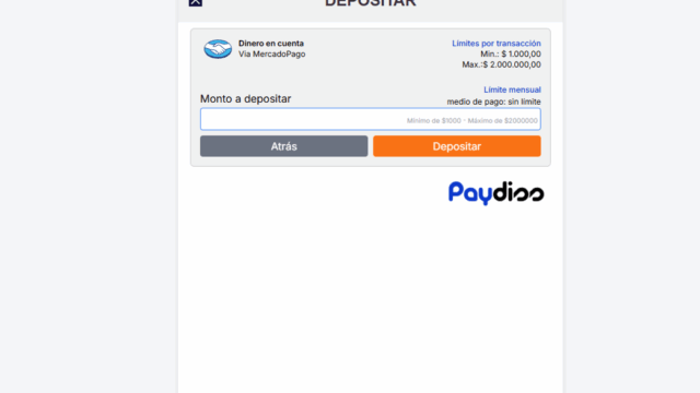 Para realizar un depósito, tenés que ingresar a tu cuenta, y en el menú de tu perfil hacer clic en “depositar”. Una vez dentro, elegí el método de pago que quieras y el monto que deseas depositar. Puede ser con Mercado Pago, tarjetas bancarias, Totalcoin, y transferencia y el depósito mínimo es de $1.000.