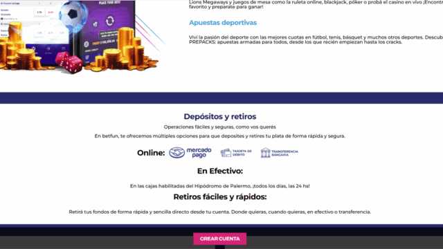 Betfun ofrece varios métodos de pago locales como transferencia bancaria, tarjetas de crédito y débito, dinero en cuenta de Mercado Pago y efectivo en las cajas del Hipódromo.