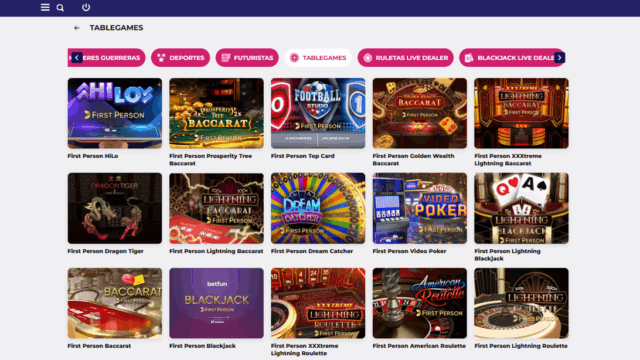 En Betfun vas a encontrar más de 1.000 slots, cientos de mesas de blackjack, poker, baccarat, ruleta, y casino en vivo.