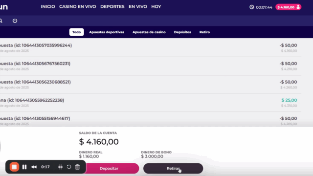 Otro punto a favor es que brinda bonos diarios, el cual es un atractivo tanto para todos los jugadores. También quiero destacar que muestra los avisos de Juego Responsable constantemente, y que tiene varios métodos de pago e incluso la posibilidad de retirar en efectivo en las cajas del Hipódromo.