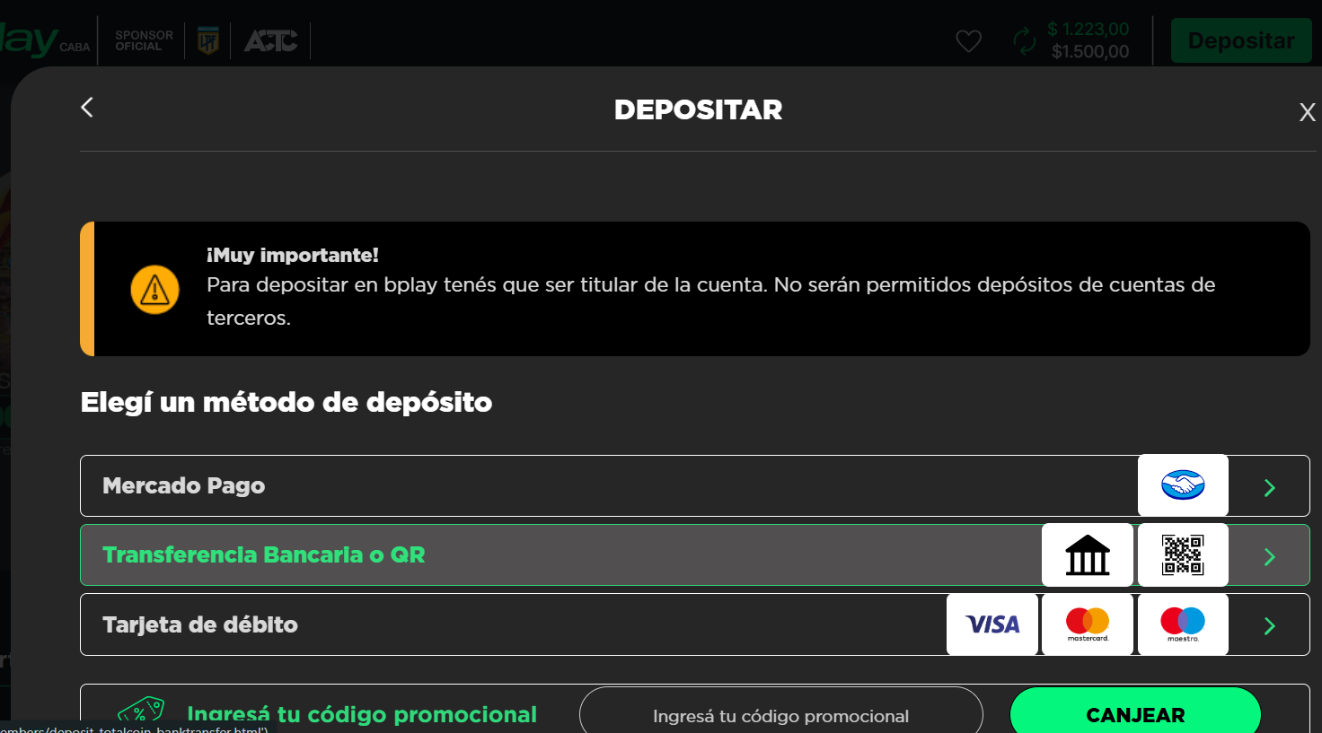 Para este ejemplo, voy a ingresar dinero en el casino Bplay.