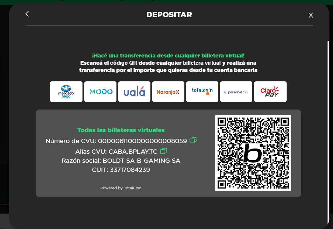 - Podés depositar con QR sin ingresar datos bancarios al casino.