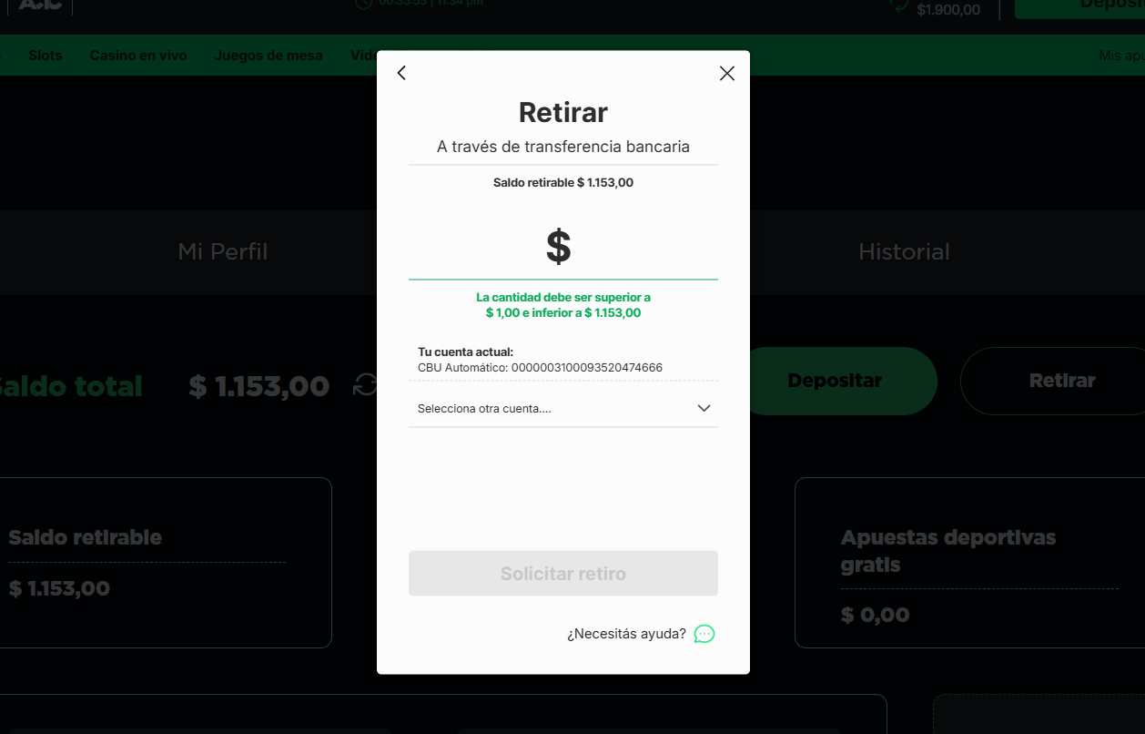 Sí, podés retirar tus ganancias de un casino online argentino a tu cuenta Ualá, pero con una aclaración: los casinos no ofrecen la opción de “retirar con Ualá” de manera directa. La única vía disponible es la transferencia bancaria, y en ese caso lo que hacés es ingresar tu CVU de Ualá en el formulario de retiro.