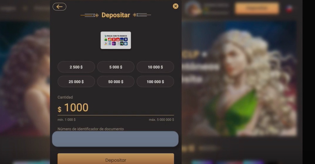 Es el momento que estipules cuánto quieres depositar en el casino (en un rango que va entre $1.000 y $5.000.000); además, deberás dar tu RUT. Hecho hecho, das clic en continuar.