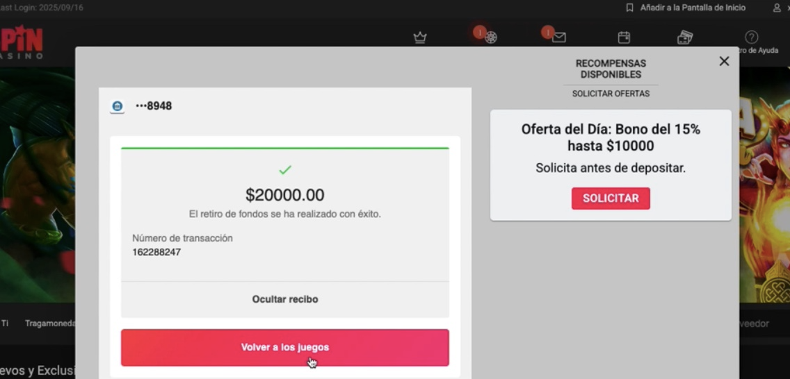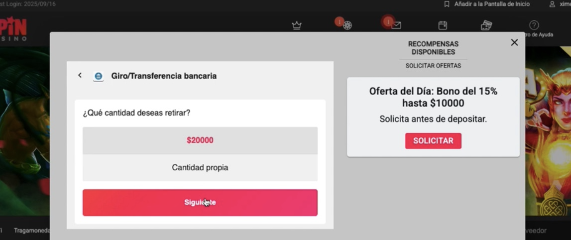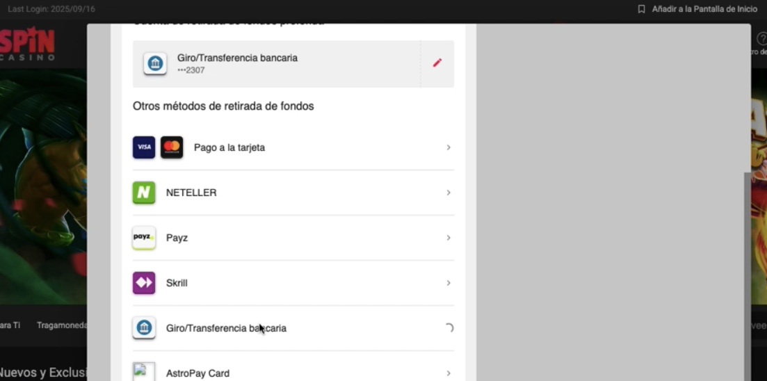 Ahora es el momento de retirar, y he elegido a Spin Casino para ello. Lo hice y acá te dejo la experiencia. Si tienes preguntas o quedaste con dudas, te invito a que revises el paso a paso que detallo a continuación.
