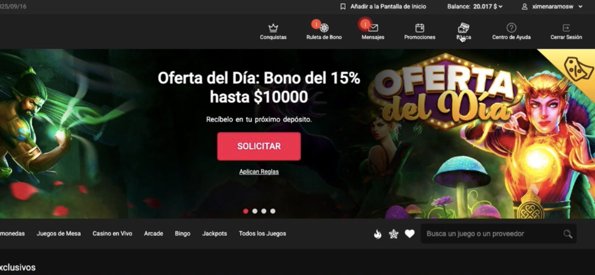 Para mí destaca, sobre todo, por su oferta de juegos, compuesta principalmente por de tragamonedas, casino en vivo y juegos rápidos. Además, ofrece un bono de 100% hasta $100.000 y diferentes promociones activas.