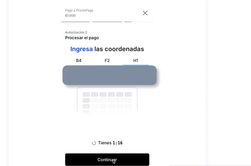 Como un paso de seguridad adicional, luego de hecho lo anterior, deberás ingresar los números de tu tarjeta de coordenadas de BancoEstado que te indiquen en la pantalla.