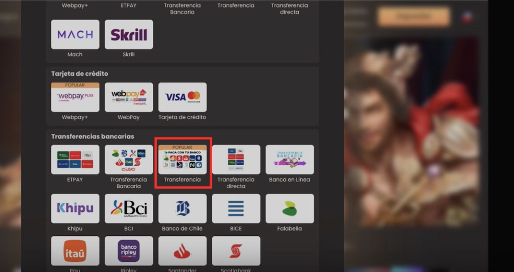Una vez acá, debes elegir la forma en la que quieres hacer el depósito. En el caso de hacerlo con Cuenta RUT debes elegir “transferencias bancarias” y hacer clic en “Transferencia” (que es a que tiene el monto mínimo más bajo); para diferenciarla de otras opciones de transferencia, puedes fijarte en que está marcada como una de las más populares y, además, dentro de los bancos aparece el logo de BancoEstado.