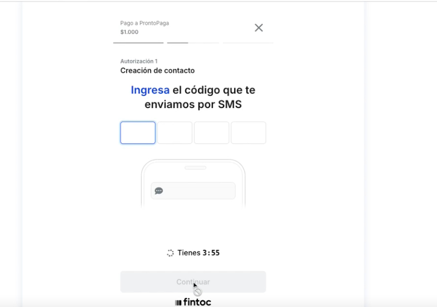 Se te enviará un mensaje SMS con un código a tu teléfono celular registrado en el banco, el que deberás ingresar acá.