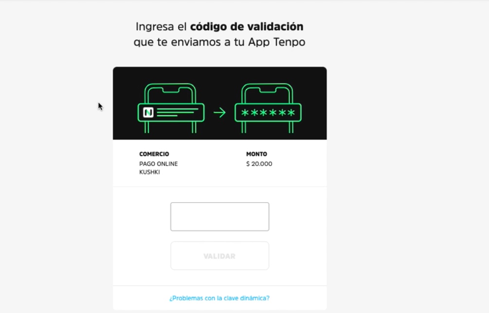 Hecho esto, se te enviará a tu celular, específicamente a tu App de Tenpo, un código de validación que debes ingresar acá.