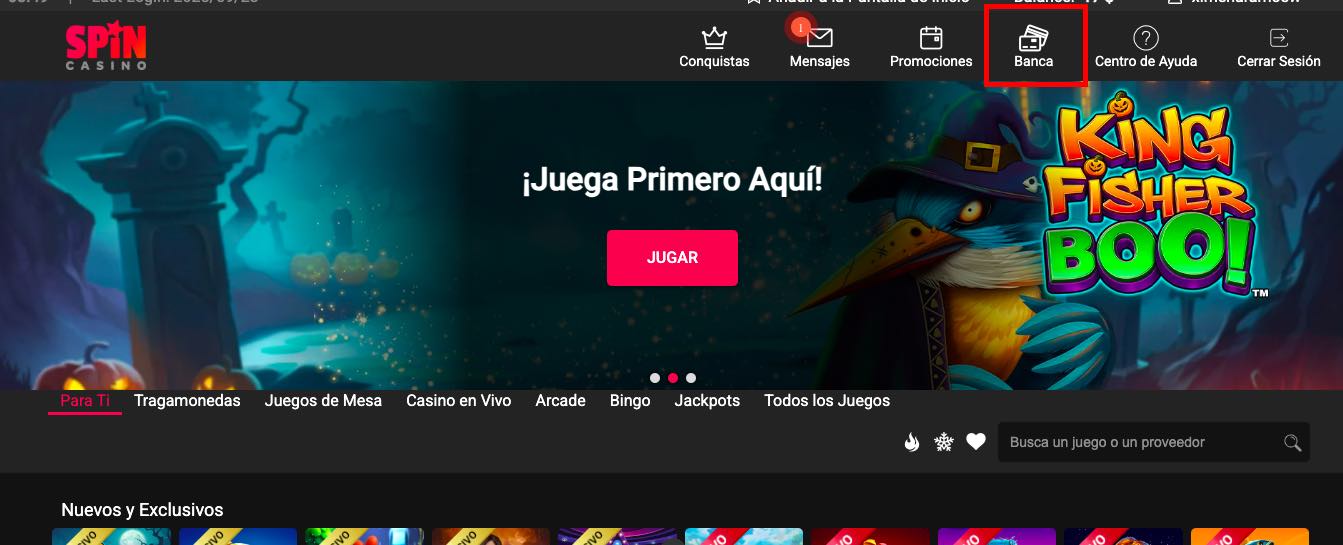 Si ya estás en el camino de hacer un depósito con Tenpo, a continuación lo he probado yo misma para comentarte cómo lo puedes realizar. En mi caso, he elegido al casino online Spin Casino para hacer este depósito, que permite efectuarlo directamente desde su plataforma.