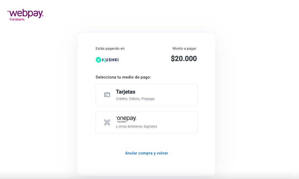 Para poder operar con Tenpo, que en este caso lo haremos con la tarjeta de prepago, debes elegir la opción de WebPay.
