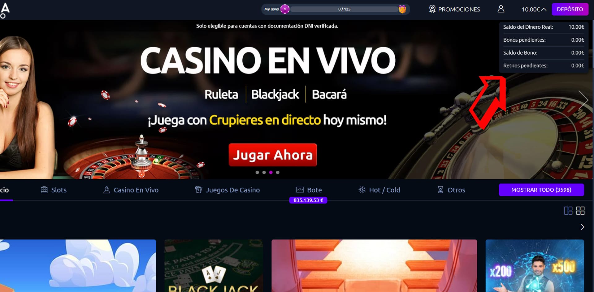 Paso 1 – Entrar en la cuenta del casino
