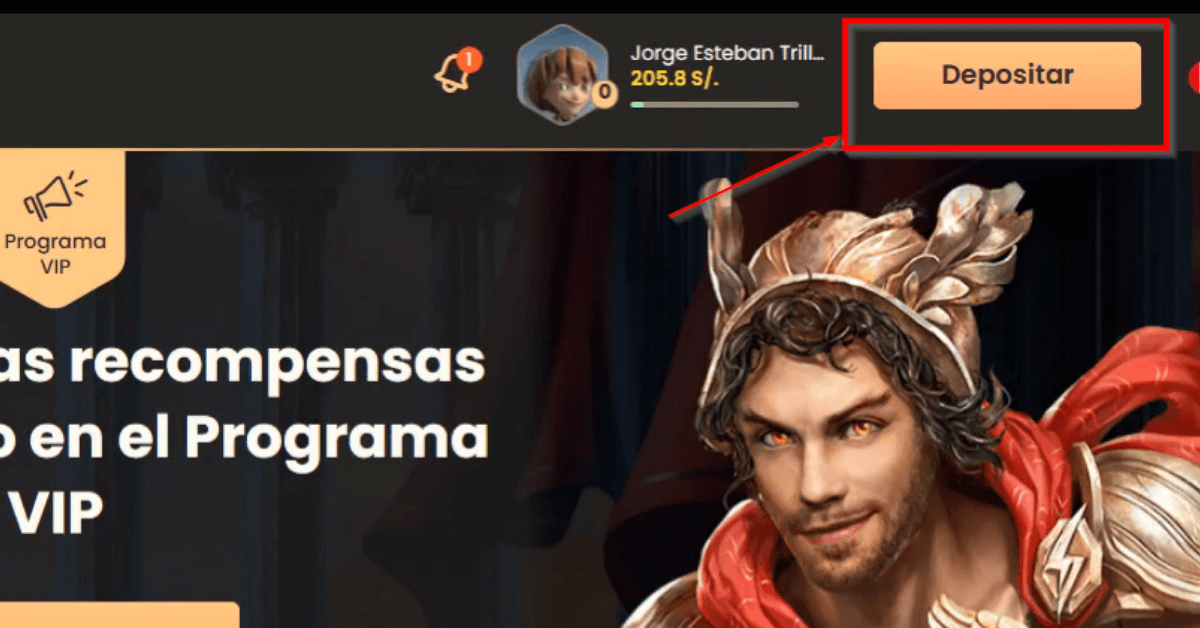 Paso 1: Ingresa al casino y haz clic en “Depositar” o “Cargar”