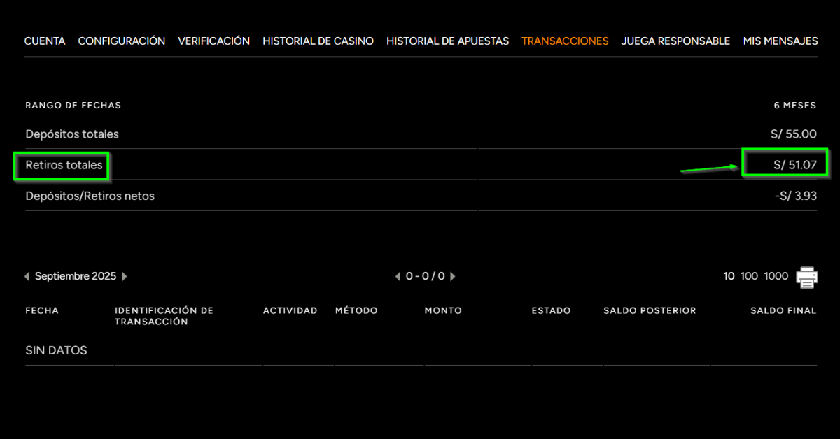 Voy a la sección “Transacciones” y reviso el estado del retiro. El sistema muestra el monto, fecha, método y saldo posterior. Si todo está correcto, el dinero llega a mi cuenta bancaria en un plazo de 4 a 24 horas (algunos casinos duran menos de 5 minutos), dependiendo del banco. Todo queda registrado y trazable.