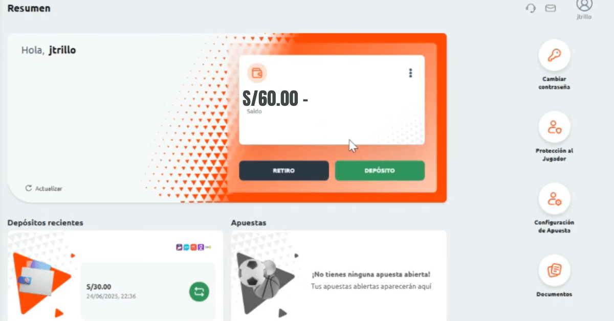 Ingresé a mi cuenta del casino online peruano y entré a la sección de “Depositar”. Desde ahí tuve acceso a todos los métodos de pago disponibles, lo que me permitió elegir la opción que mejor se adaptaba a mí. Todo el proceso fue rápido e intuitivo.