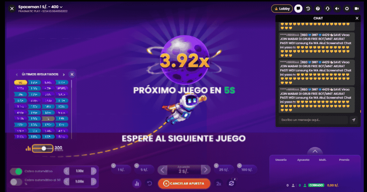 Cuando quiero variar de Aviator pero con la misma lógica, elijo Spaceman. Tiene el mismo RTP confiable, pero con unos gráficos que me atraparon desde la primera vez. La mecánica es idéntica de adictiva: ver subir el multiplicador y decidir cuándo hacer “aterrizar” al astronauta. En mis pruebas, he notado que las rachas pueden ser similares.