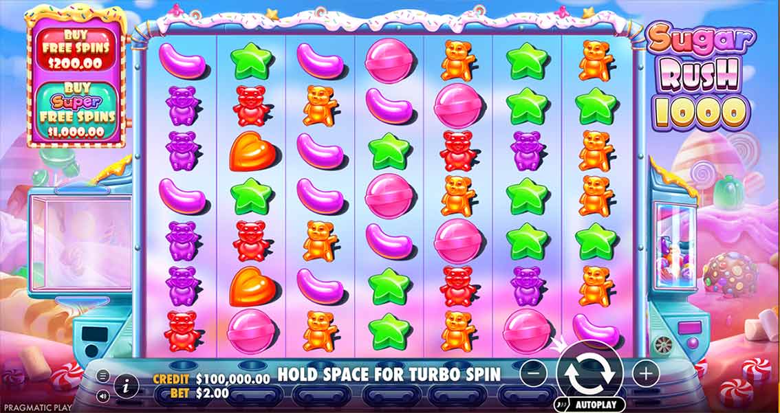 Sugar Rush 1000 es una slot de dulces caramelitos creada por Pragmatic Play, uno de los principales proveedores mundiales. El objetivo es agrupar 5 o más caramelos en casillas contiguas, en un tablero 7×7.
