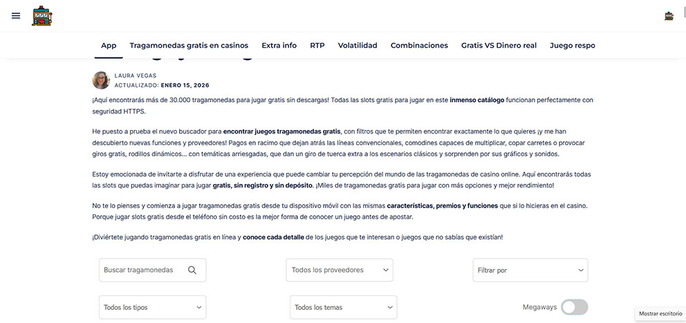 1. Entra desde tu navegador de confianza en el catálogo de MejoresCasinos.com Puedes buscar por el nombre del juego que quieres, filtrar por tipo, proveedor y fecha de publicación.