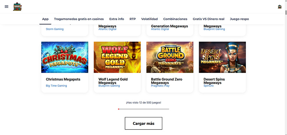 3. ¡Elige entre 500 slots Megaways para jugar gratis! Pulsa el botón “Cargar Más” para que se muestren nuevos títulos.