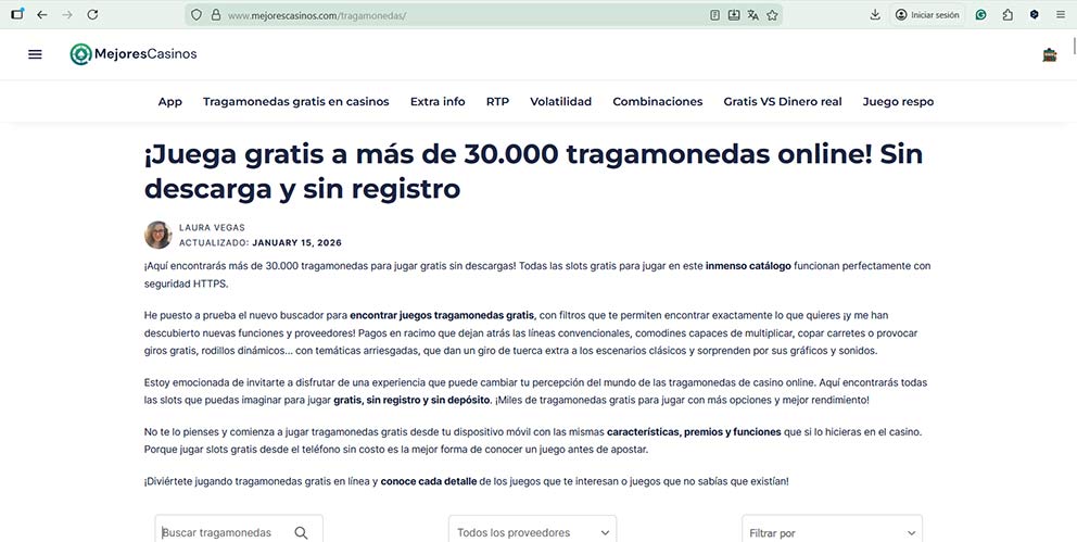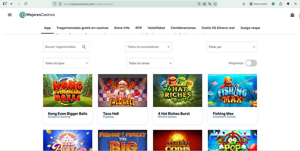 1. Abre el catálogo de demos de tragamonedas gratis de MejoresCasinos.com.
