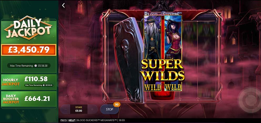 Blood Suckers Megaways es un despliegue vampírico de monstruos y funciones, entre las que hay comodines apilados. En este caso se llaman super wilds y hacen honor a su nombre incluyendo multiplicadores.